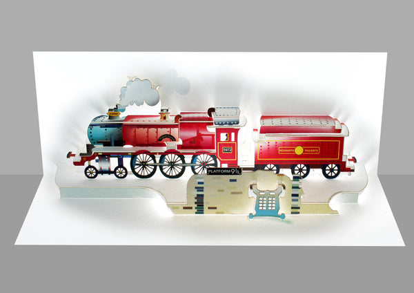 A spectacular hand designed card, illuminating the awe and wonder of the now iconic train which ran from Kings Cross Platform 9 3/4 to Hogsmeade station in J K Rowling's Harry Potter series